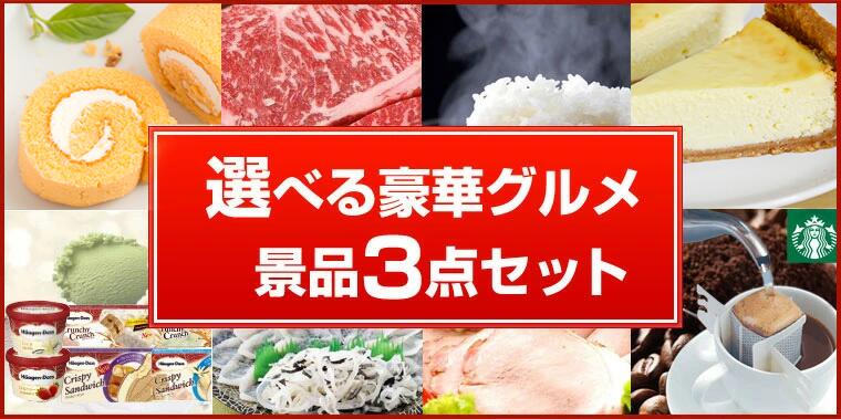 二次会 景品 セット お茶プレッソ ハーゲンダッツ等の中から選べる豪華グルメ3点セット 目録 A3パネル付です。