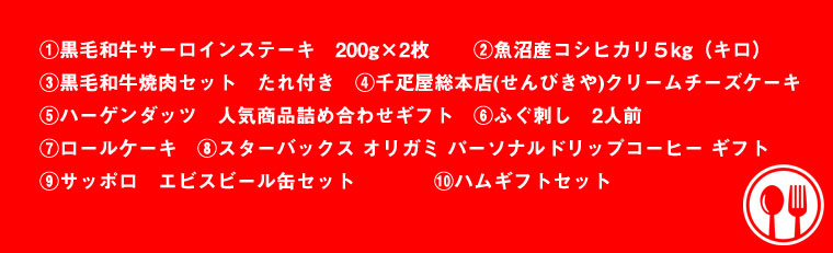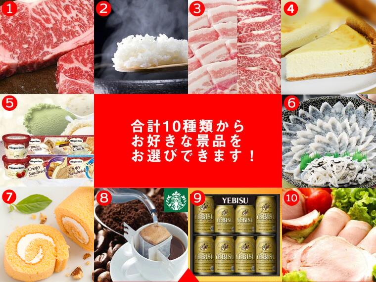ハーゲンダッツ、スターバックスコーヒーなどの中から